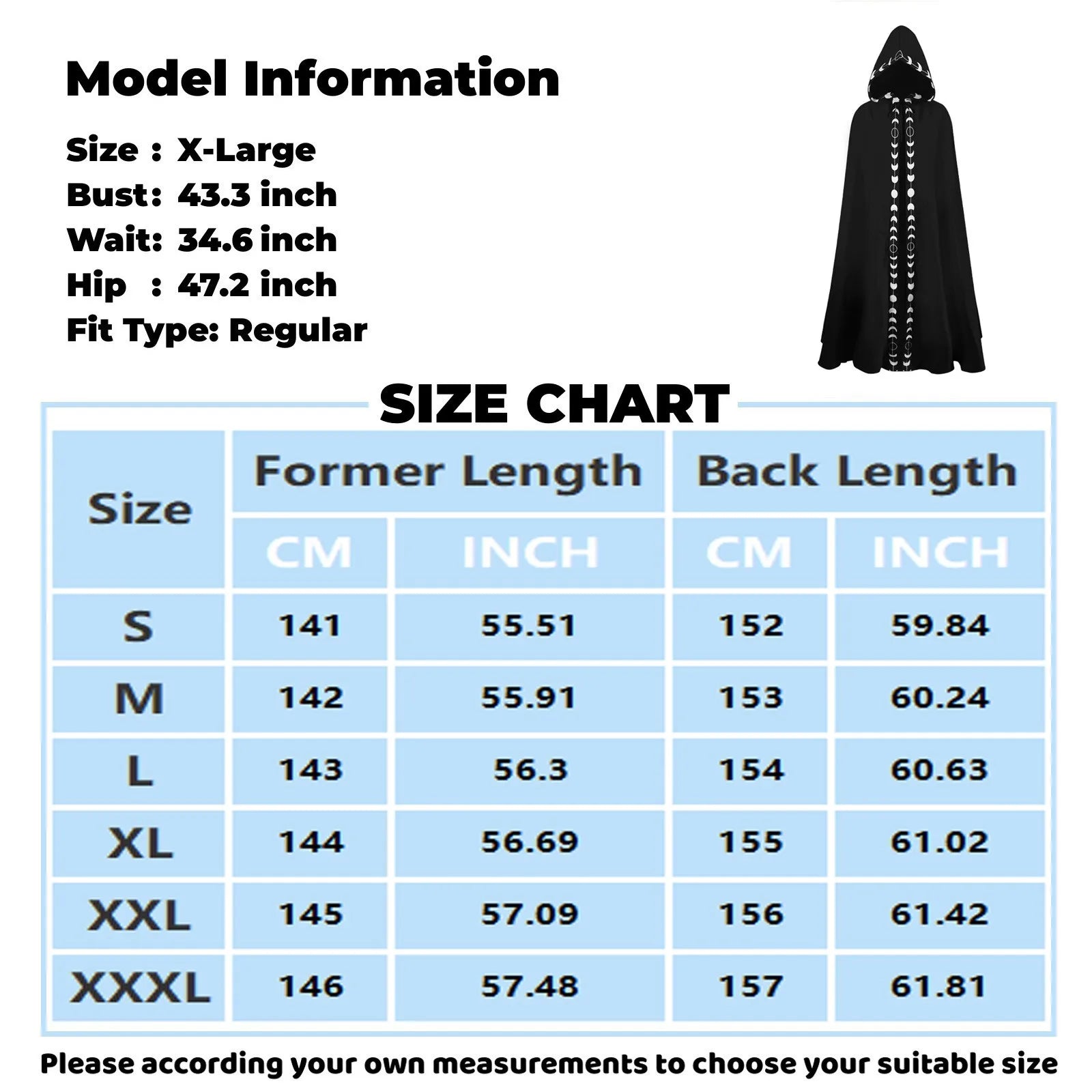 Included: 1 Hooded Cloak